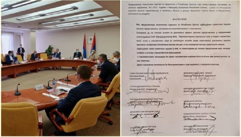 Stranke iz RS tada su usaglasile zaključke, a dokument je potpisan danas.