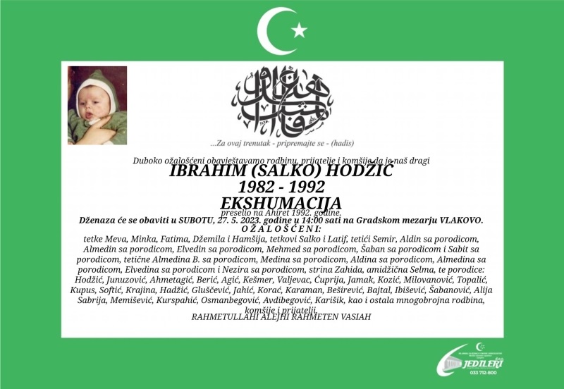 U subotu će se, na sarajevskom groblju Vlakovo, klanjati dženaza Ibrahimu Hodžiću. Imao je deset godina kada je, svezanih ruku, ubijen u svom rodnom Višegradu, u ljeto 1992. godine. Više od tri decenije kasnije, Ibrahim će naći smiraj u Sarajevu, daleko od svog rodnog grada.