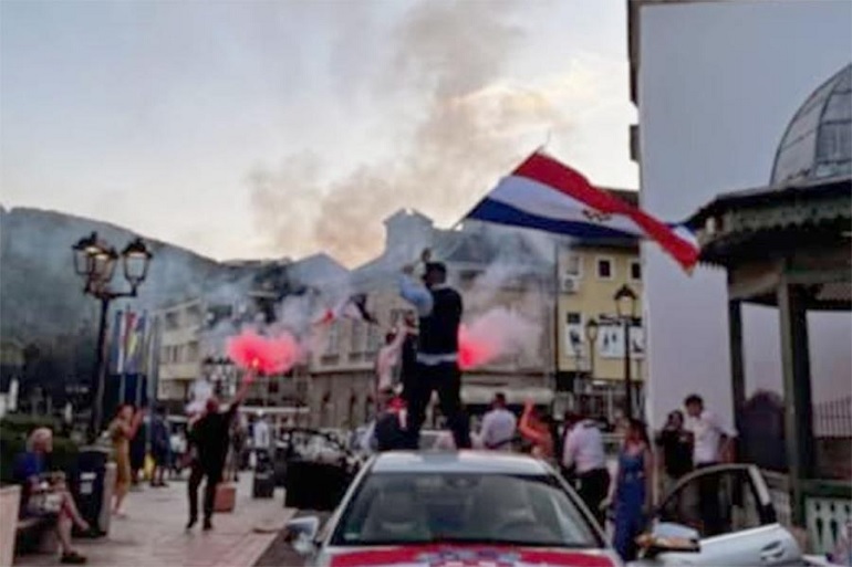 Prema navodima iz SDA Jajce, kolona se zaustavila ispred gradske džamije, gdje su pojedini učesnici, mašući etničkim zastavama i glasno skandirajući, narušili javni red i mir s očitom namjerom provokacije.