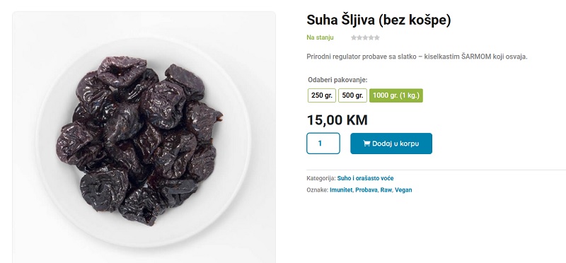 Jedan od takvih primjera je cijena suhe šljive koje je autohtono za područje Bosne i Hercegovine, a koje je u pojedinim marketima dostiglo gotovo nevjerovatnih 27 KM po kilogramu. Riječ je o proizvodu koji je decenijama bio simbol domaće proizvodnje i nezaobilazan sastojak tradicionalne kuhinje, zbog čega mnogi kupci s nevjericom gledaju nove cjenovnike.