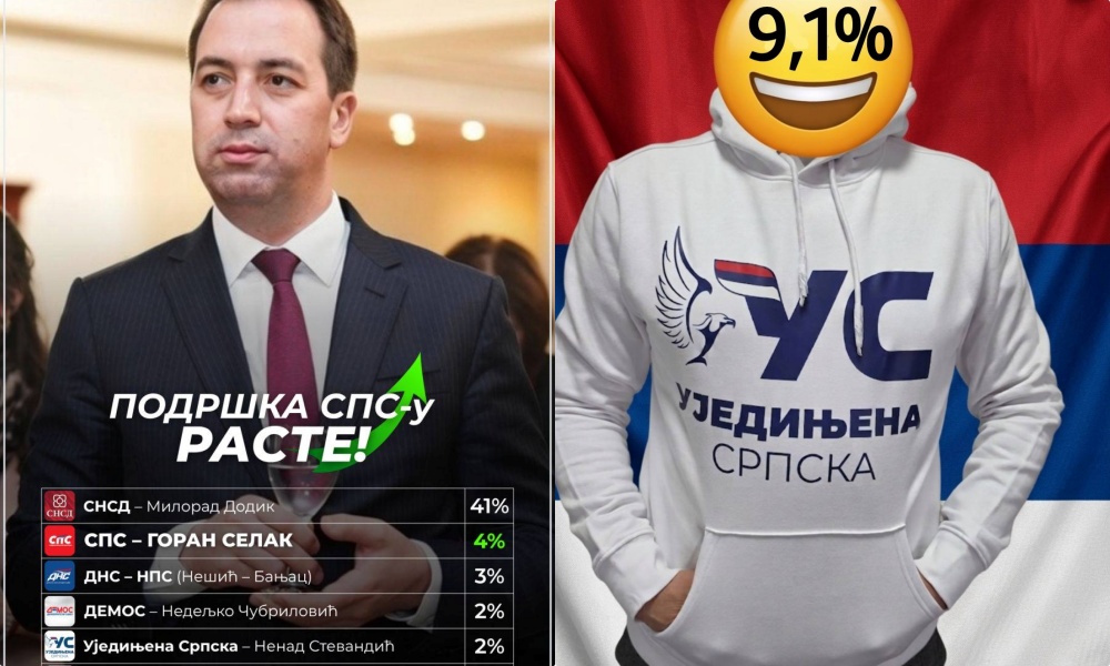 Prema rezultatima istraživanja, Savez nezavisnih socijaldemokrata nalazi se na prvom mjestu sa 41 posto podrške, dok je na drugoj poziciji Pokret Sigurna Srpska sa 18 posto. Srpska demokratska stranka je treća sa 12 posto, dok su ostale stranke ispod deset posto. U istraživanju se navodi da SPS ima četiri posto podrške, DNS tri posto, dok Demos i Ujedinjena Srpska imaju po dva posto, a SP Petra Đokića jedan posto. Istraživanje je, prema objavljenim podacima, provedeno tokom prošlog mjeseca na uzorku od oko 1.200 ispitanika u Republici Srpskoj.