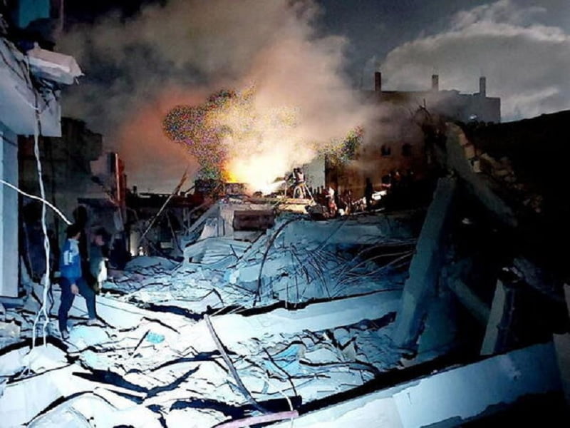 Također, izraelske bombe pogodile su kvart al-Jenina, izbjeglički kamp Shaboura i područja Mashroua u Rafi. U jednom od napada uništena je džamija al-Farouq u logoru Shaboura, prilikom čega su još tri osobe ubijene.