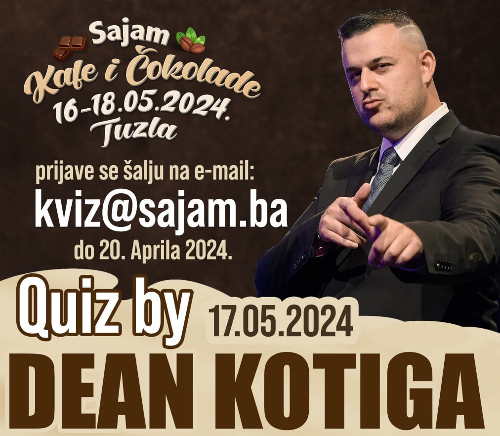 Kroz kviz sa Deanom Kotigom u okviru Sajma kafe i čokolade takođe obilježavamo Svjetski dan porodice i Svjetski dan zajedničkog života u miru. U okviru Sajma kafe i čokolade svoje učešće uzet će pored 20 srednjoškolskih ekipa i 80 ekipa kvizaša koji će u prostoru održavanja Sajma kafe i čokolade u Tuzli testirati svoje znanje sa Deanom Kotigom.