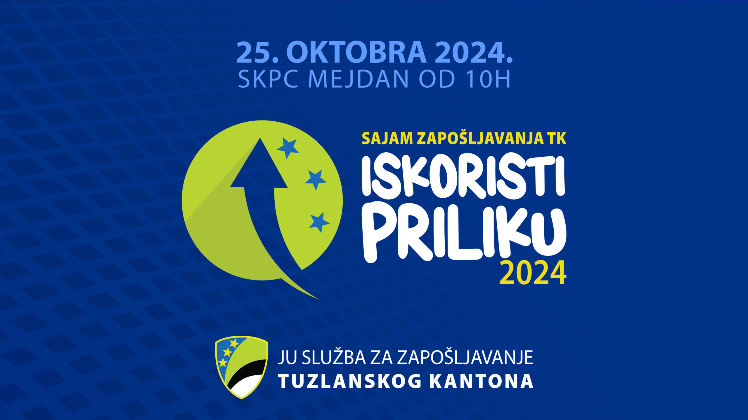 JU Služba za zapošljavanje TK Tuzla organizuje Sajam zapošljavanja TK 2024 “Iskoristi priliku” koji će biti održan u petak, 25. oktobra 2024. Godine, u velikoj dvorani SKPC Mejdan u ulici Bosne srebrene bb, 75 000 Tuzla s početkom u 10:00 sati.