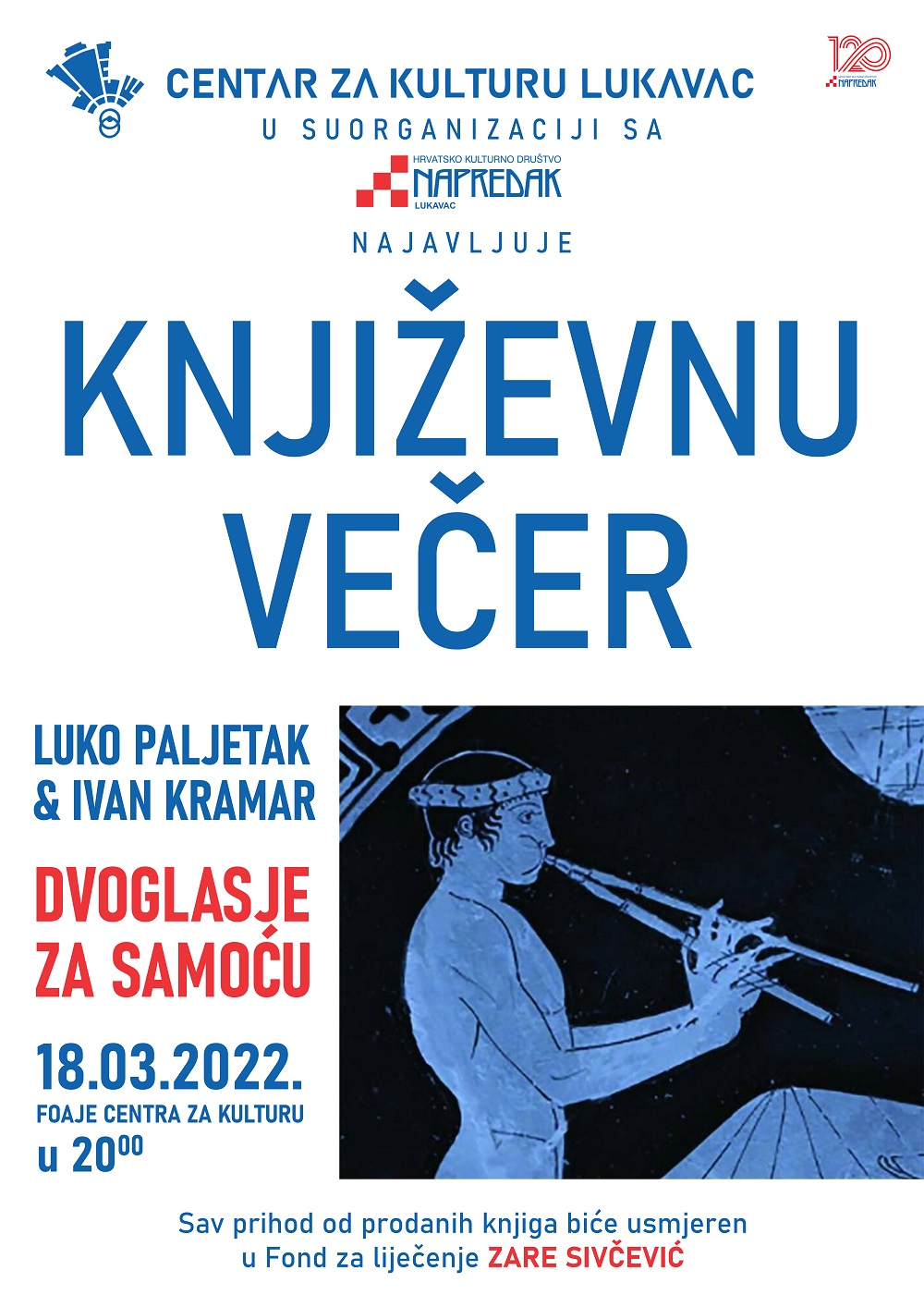 – Književnu večer ćemo upriličiti 18. marta sa početkom u 20 sati, u Foajeu Centra za kulturu, a sav prihod od prodanih knjiga bit će usmjeren u Fond za liječenje Zare Sivčević, djevojčice oboljele od cerebralne paralize. Pozivamo sve ljubitelje pisane riječi da nam se pridruže na ovom značajnom događaju i humanoj misiji – poručili su organizatori.