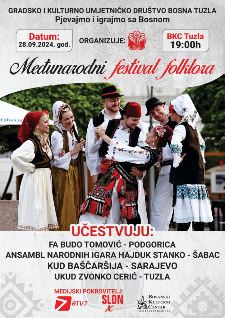 Gradsko kulturno-umjetničko društv (GKUD) Bosna Tuzla 28. septembra u Bosanskom kulturnom centru u Tuzli organizuje Međunarodni festival folklora.