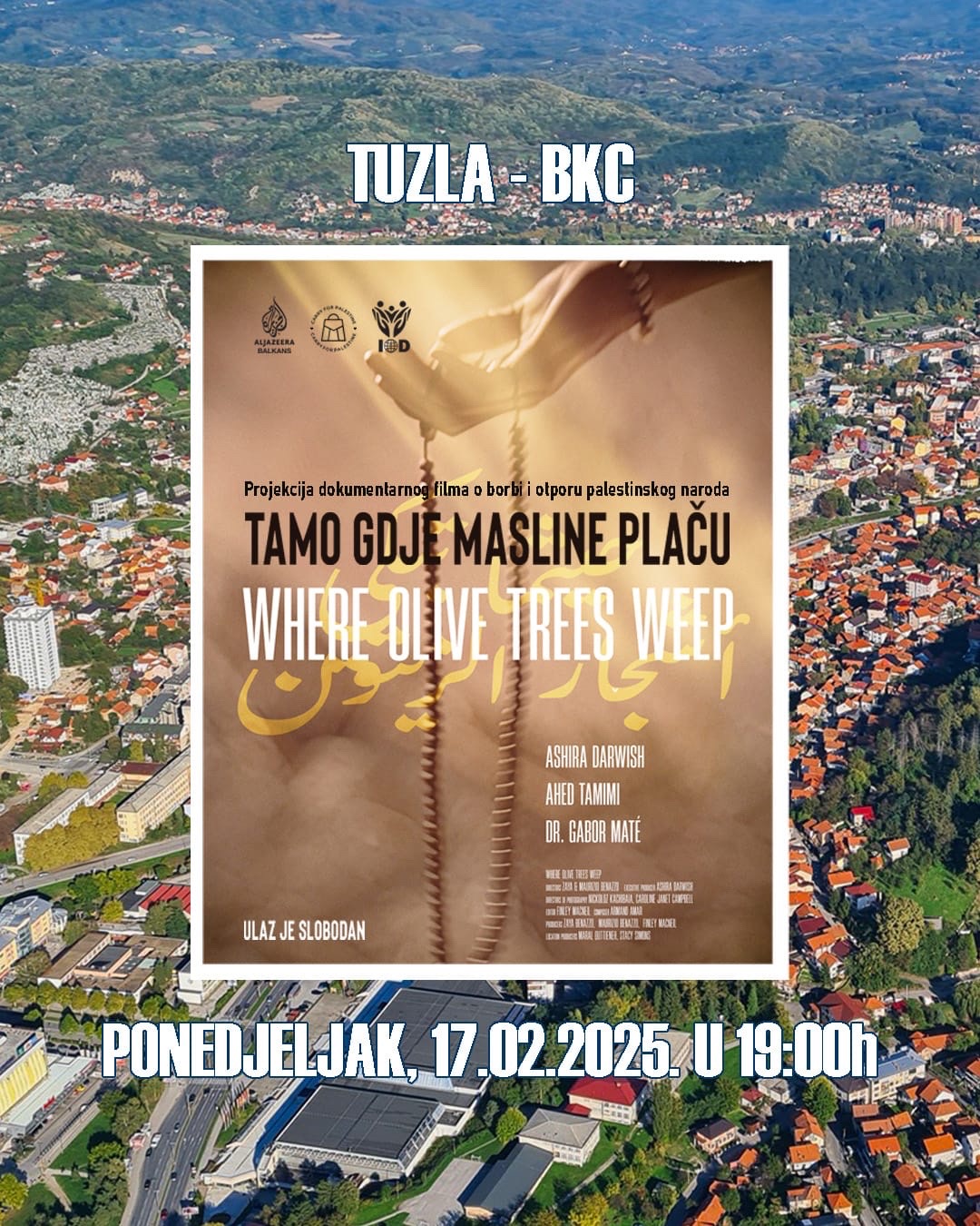 U ponedjeljak, 17. februara 2025. godine u Velikoj sali BKC-a Tuzla u 19:00 sati biti će upriličena projekcija filma „Tamo gdje masline plaču“.