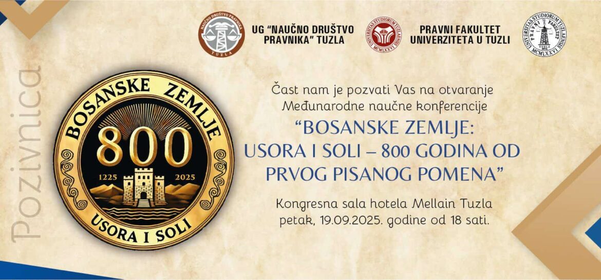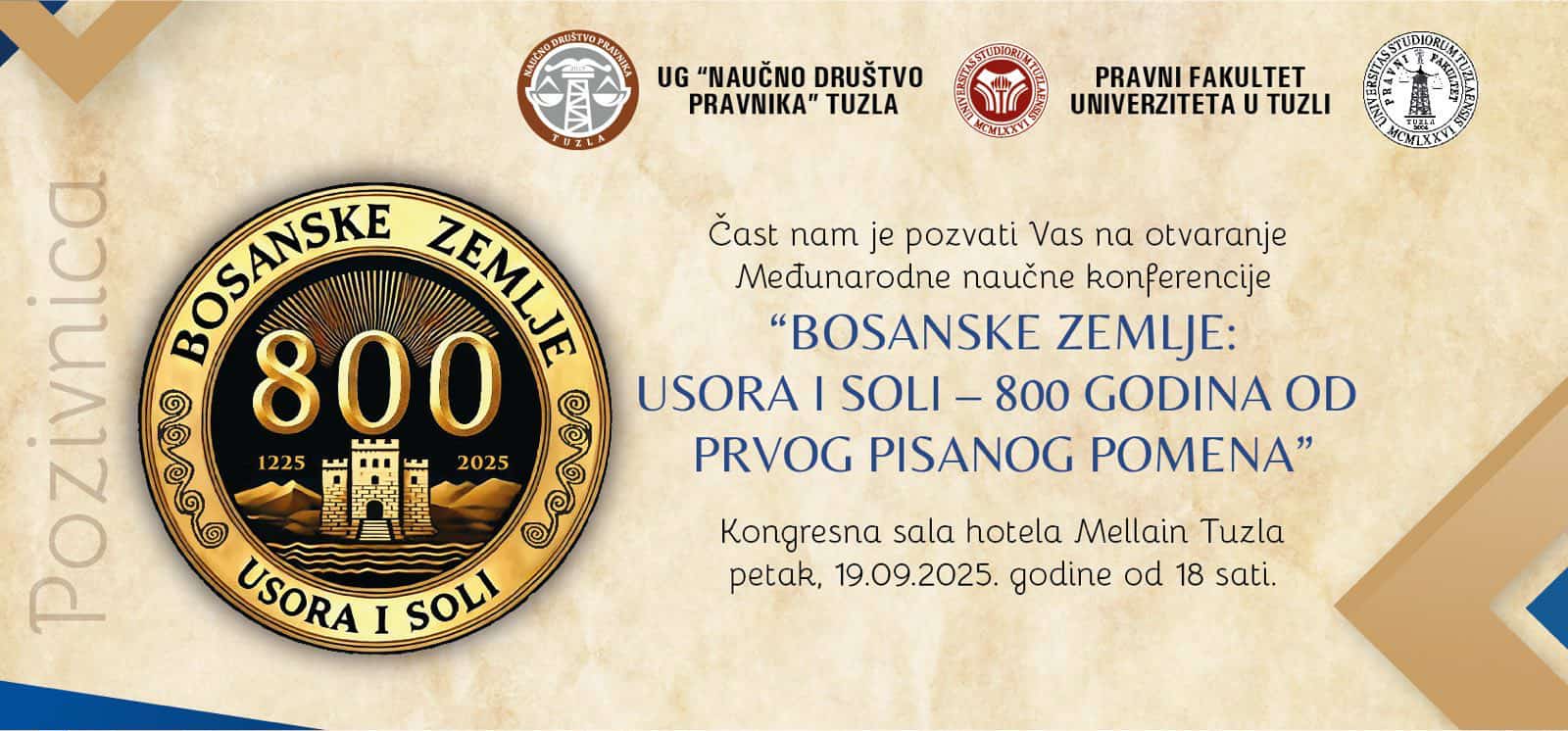 Pravni fakultet Univerziteta u Tuzli domaćin je velike međunarodne naučne konferencije „Bosanske zemlje: Usora i Soli – 800 godina od prvog pisanog pomena“, na kojoj učestvuje veliki broj domaćih i međunarodnih stručnjaka, koji se bave izučavanjem ove teme.