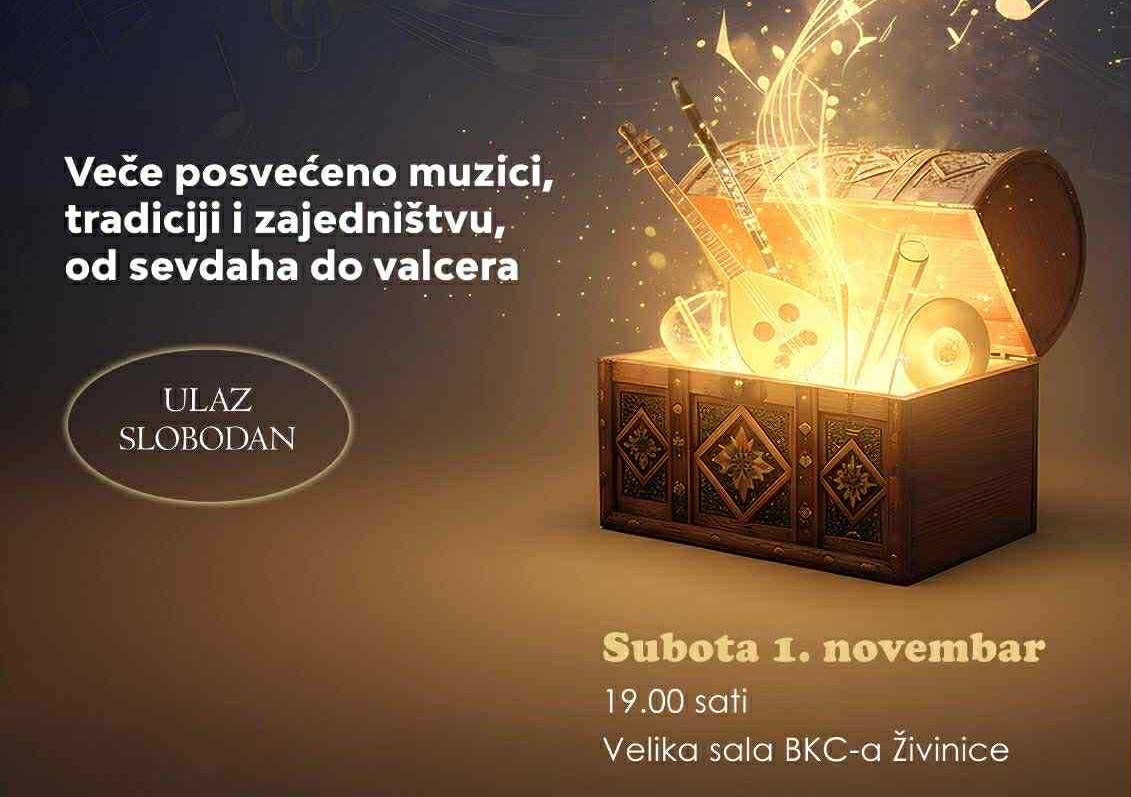 U organizaciji Udruženja građana Gradski mješoviti hor Živinice, u subotu, 1. novembra 2025. godine, u velikoj sali BKC-a Živinice s početkom u 19:00 sati, bit će održana muzička manifestacija pod nazivom „Muzička sehara – poklon našem gradu Živinice“.