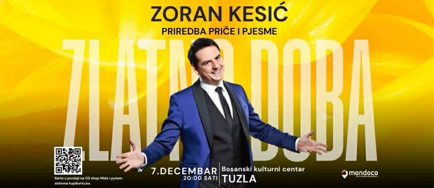 Bosanski kulturni centar Tuzlanskog kantona večeras će ugostiti Zorana Kesića, koji u Tuzlu dolazi sa svojim scenskim i humorističnim spektaklom „Priče i pjesme – Zlatno doba“, nakon niza rasprodanih nastupa širom regije.