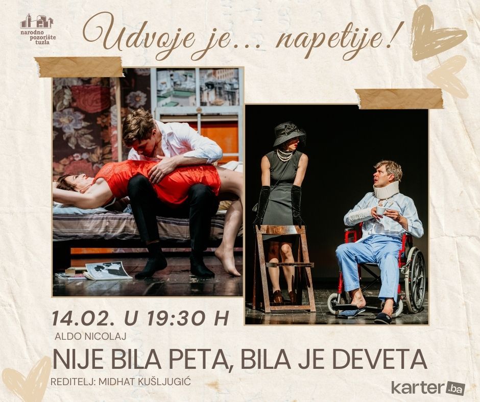 Narodno pozorište Tuzla najavljuje posebnu pozorišnu noć povodom Dana zaljubljenih, uz predstavu koja donosi spoj misterije, humora i neočekivanih obrta. Publika će 14. februara 2026. godine imati priliku pogledati komad „Nije bila Peta, bila je Deveta“ autora Alda Nicolaja, u režiji Midhata Kušljugića, koji kroz duhovite, ali zagonetne situacije briše granicu između stvarnosti i mašte.