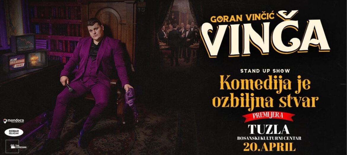 Goran Vinčić Vinča, jedan od najtraženijih stand-up komičara u regiji, u Tuzli će 20. aprila predstaviti svoj novi show “Komedija je ozbiljna stvar”, a nastup je zakazan u Bosanskom kulturnom centru TK s početkom u 20 sati. Tuzlanska publika tako će imati priliku pogledati Vinčin treći samostalni projekt nakon uspješnih predstava “Dežurni krivac” i “Reci mi da se šališ”.