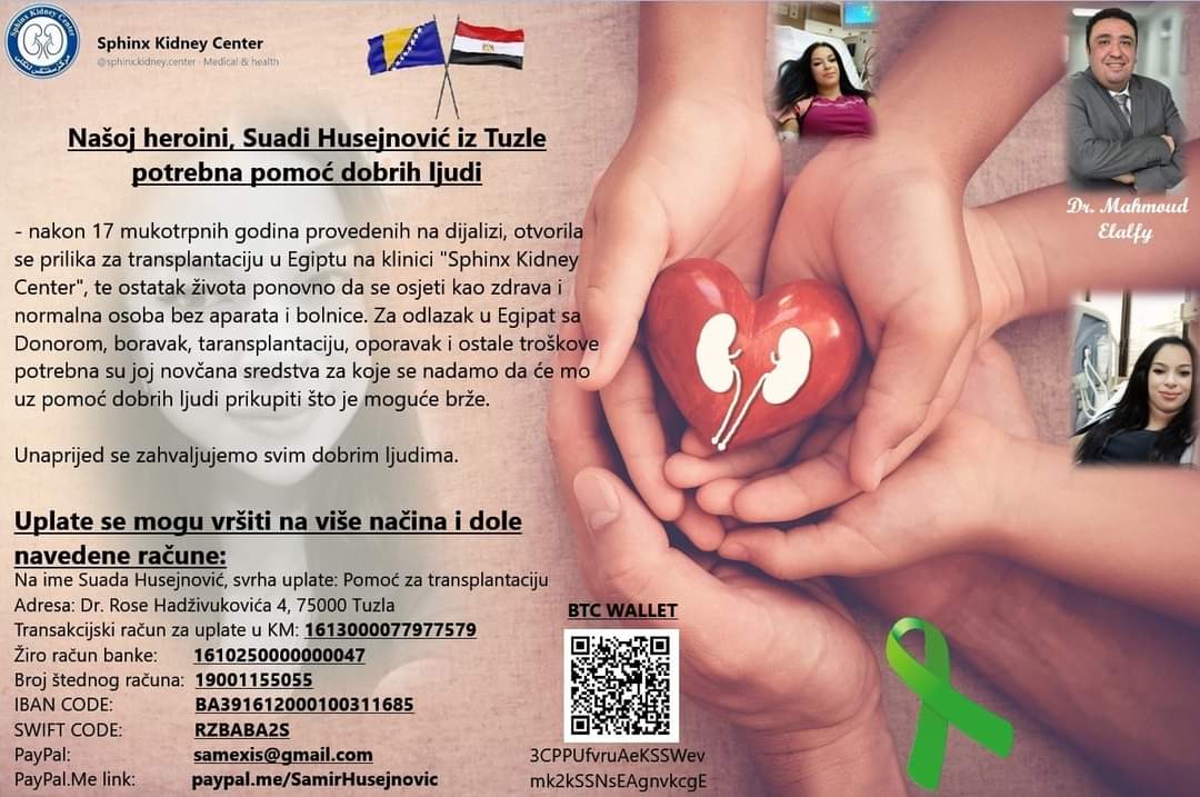 Suadina priča podijeljena je više stotina puta, pa je donor ubrzo pronađen. Sada, Suadi treba novčana podrška za troškove transplantacije i boravka u Egiptu.