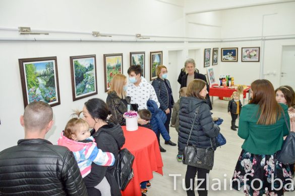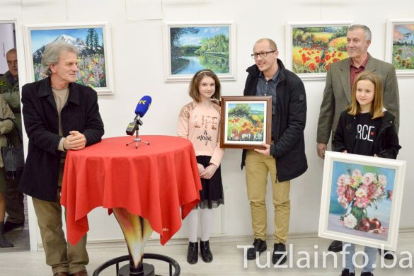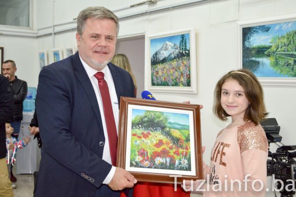 Izložbi se naknadno pridružio i Edin Delić, načelnik Općine Lukavac kome je Amina također poklonila jednu sliku u znak zahvalnosti za podršku ovom događaju. /S.P./