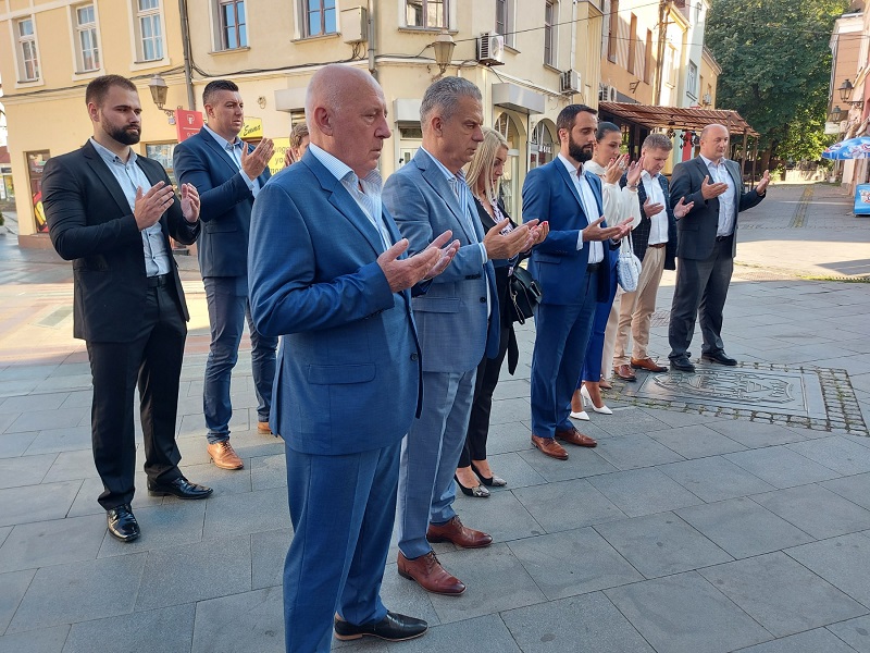 Prije skupa održanog u Dramar centru u Tuzli delegacija SBB-a je prošetala centrom Tuzle i odala počast stradalim na tuzlanskoj Kapiji.