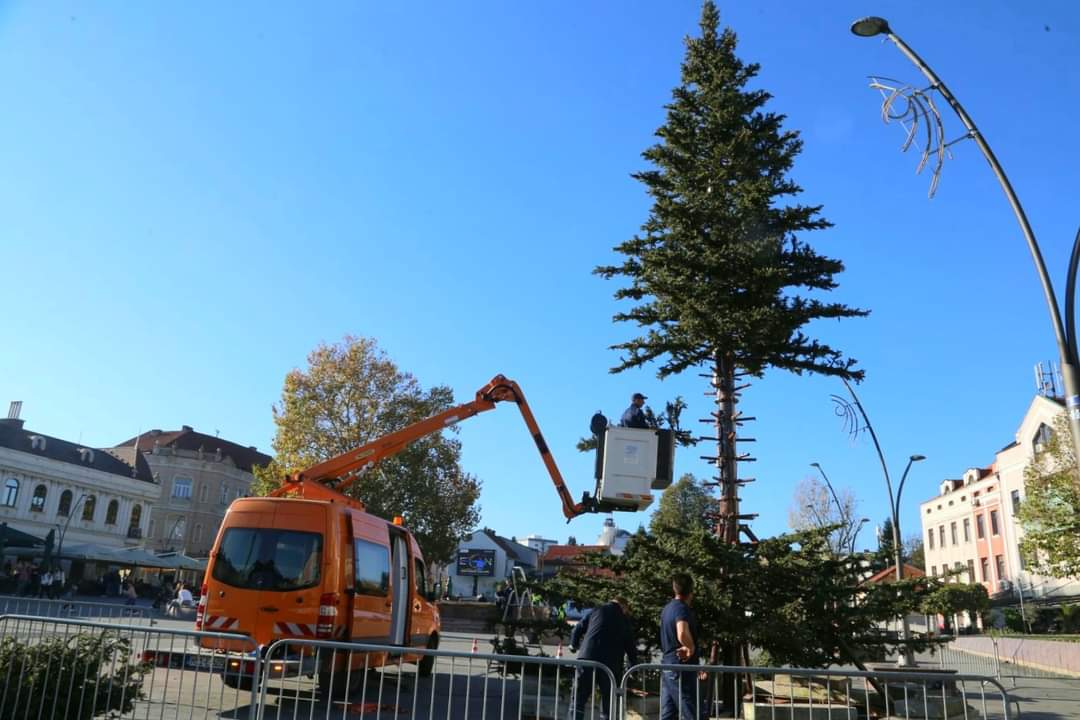 U Tuzli je počelo postavljanje prazničnih ukrasa i jelke koja posljednjih godina krasi Trg slobode tokom novogodišnjih praznika.