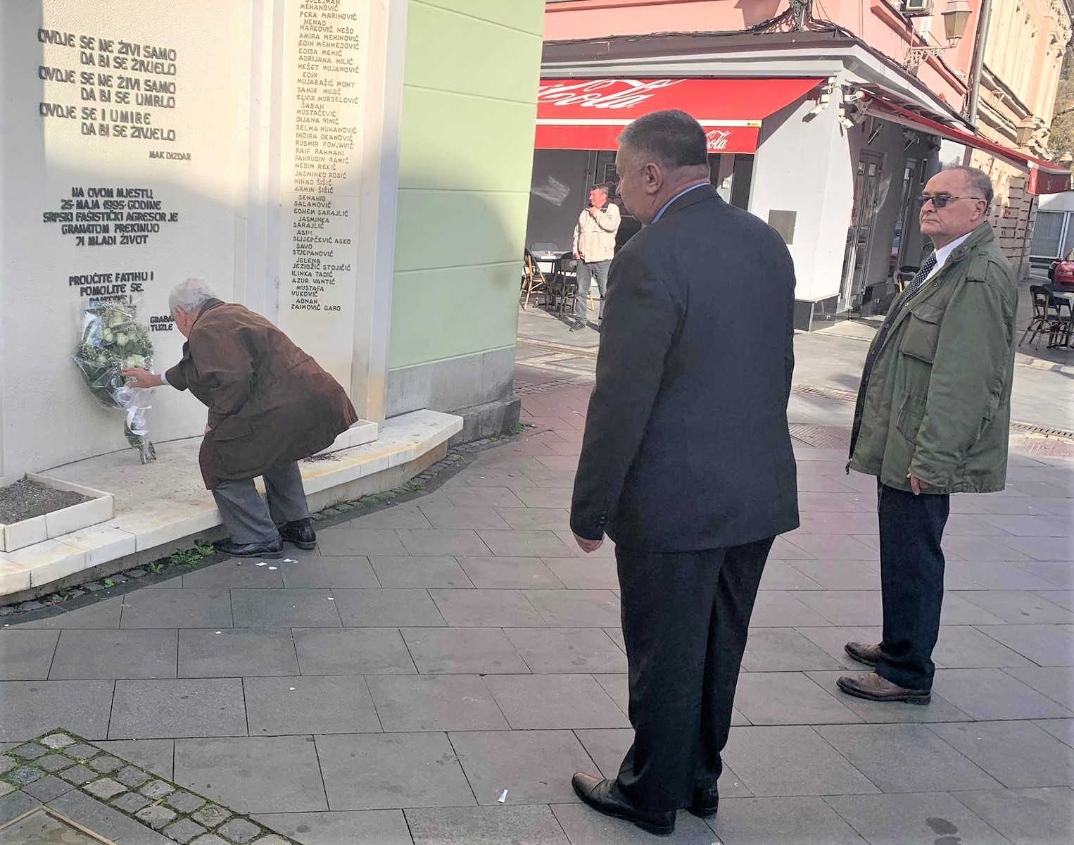 U sklopu posjete Tuzli i Bosanskom kulturnom centru TK, Azem Vlasi je danas zajedno sa delegacijom BKC-a predvođenom direktorom Seadom Muminovićem i Ekremom Avdićem, koji je moderator večeranje tribine, položio cvijeće i odao počast ubijenim civilnim žrtvama u masakru na tuzlanskoj Kapiji.