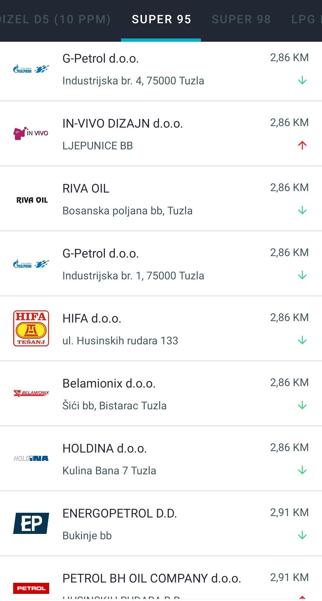 Kada je u pitanju benzin, najjeftiniji je na Bingo petrol pumpi, a cijena iznosi 2,66 KM.
