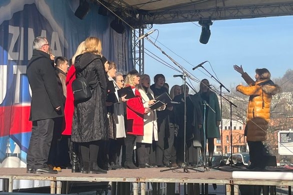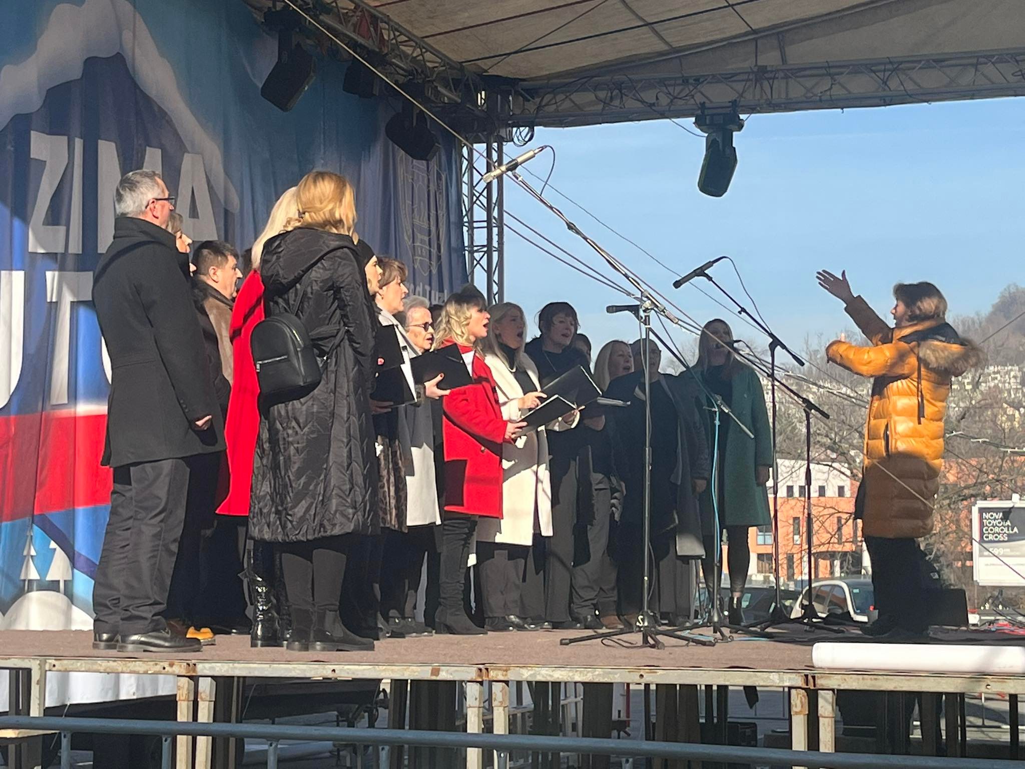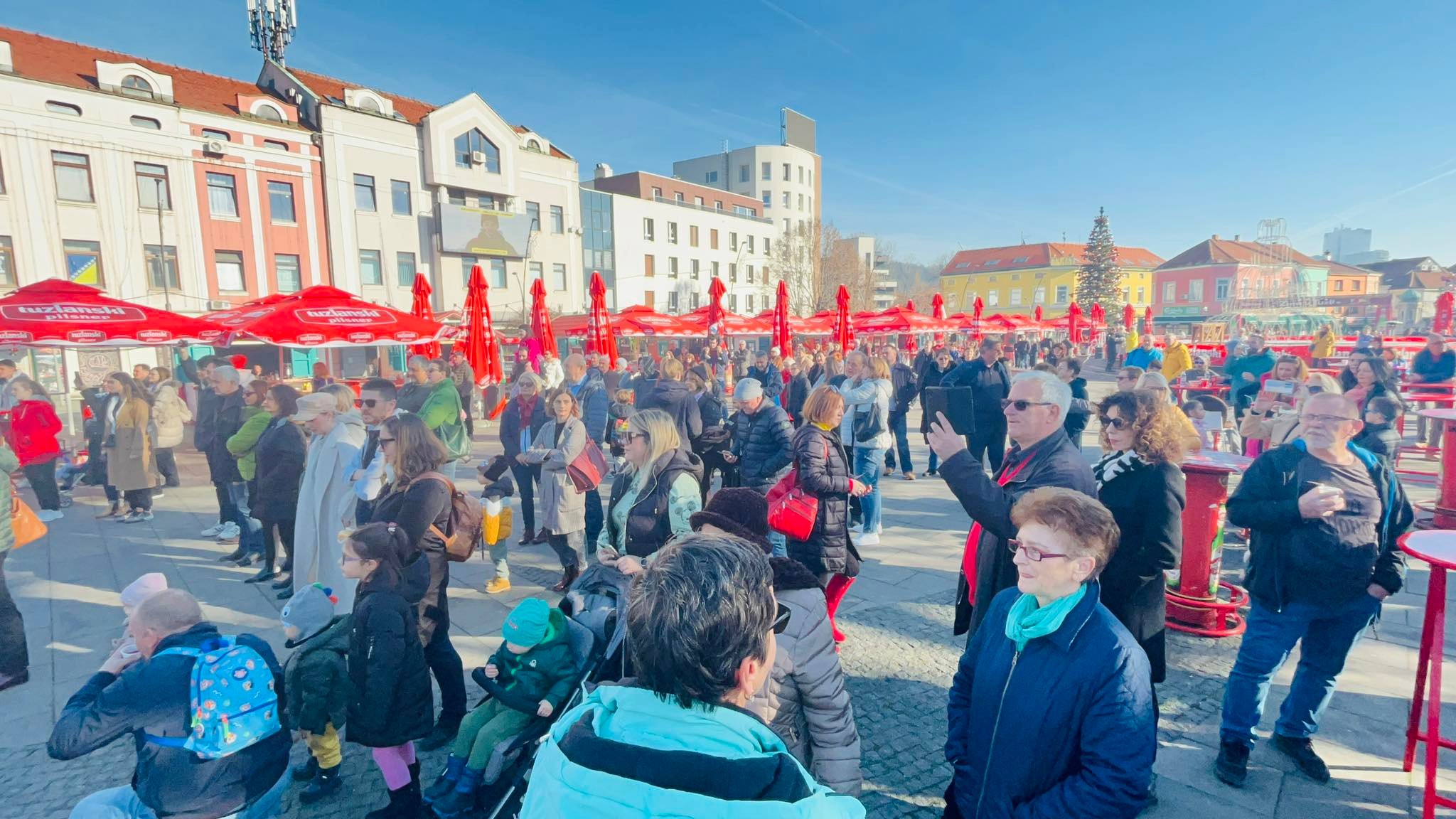 Tokom današnjeg programa građani su se mogli poslužiti kolačima i kuhanim vinom, te uživati u narodnim igrama koje je izvelo KUD “Bosna”, te nastupima Plesnog kluba Flamenco i Mješovitog hora iz Živinica.