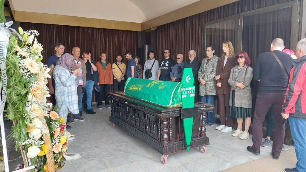 Mnogobrojni građani Tuzle, košarkašice i košarkaši, prijatelji, poštovaoci lika i djela Senada Muminovića ispratili su ga danas ispred Komemorativnog centra na vječni počinak.