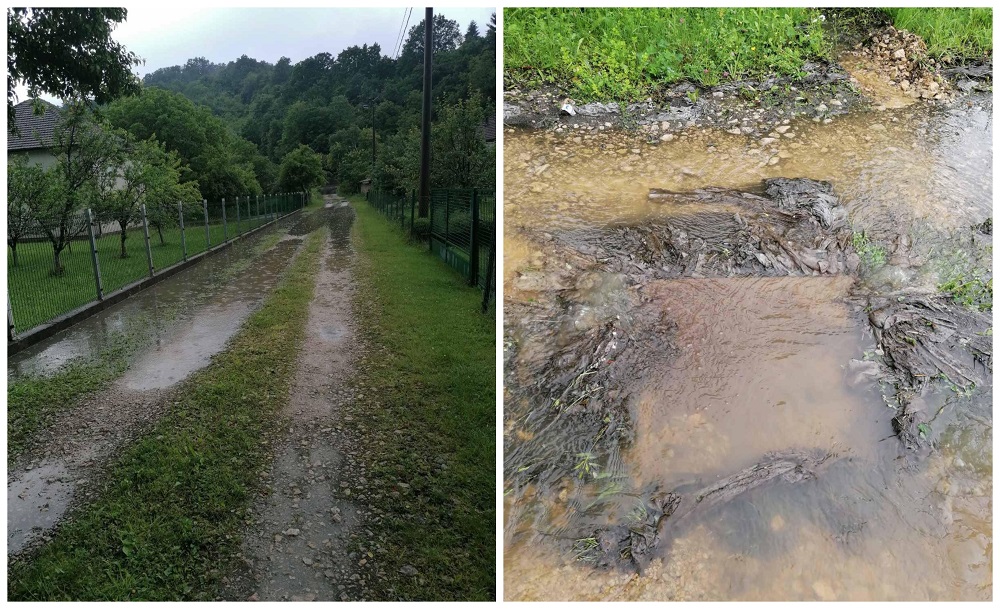 U tuzlanskom naselju Dokanj, tačnije mjestu Dragošević, usred obilnih padavina desilo se da oborinske vode potkopavaju put usljed čega je došlo zbog pucanja cijevi između dva šahta.