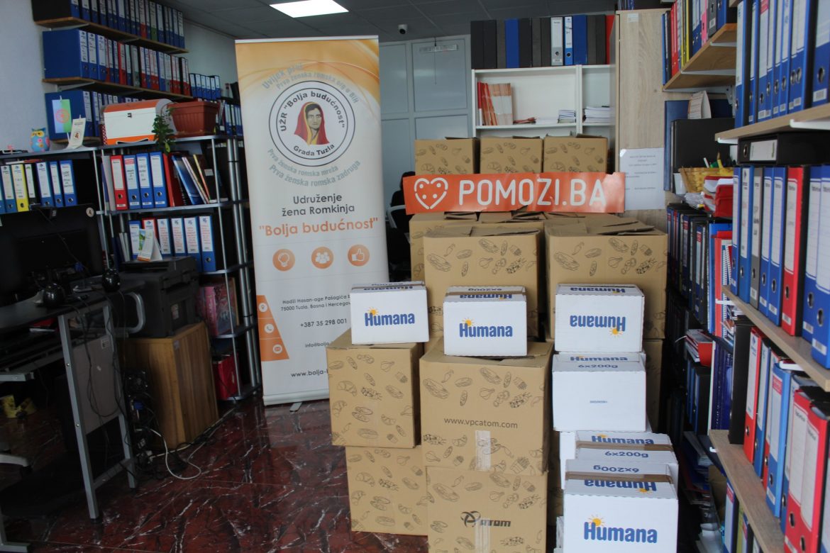 Udruženje Pomozi.ba dodijelilo je Udruženju žena Romkinja “Bolja budućnost” Tuzla više prehrambenih paketa za bebe.