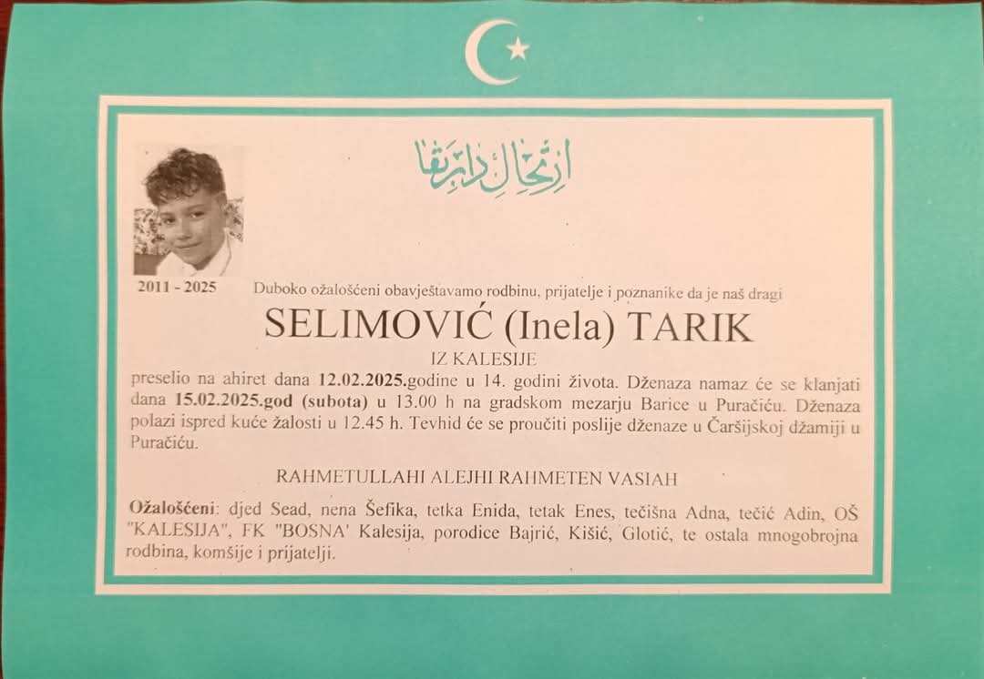 U subotu 15. februara će biti klanjana dženaza i obavljen ukop Inele Selimović i njenog sina Tarika Selimovića, koji su ubijeni u Kalesiji 12. februara.