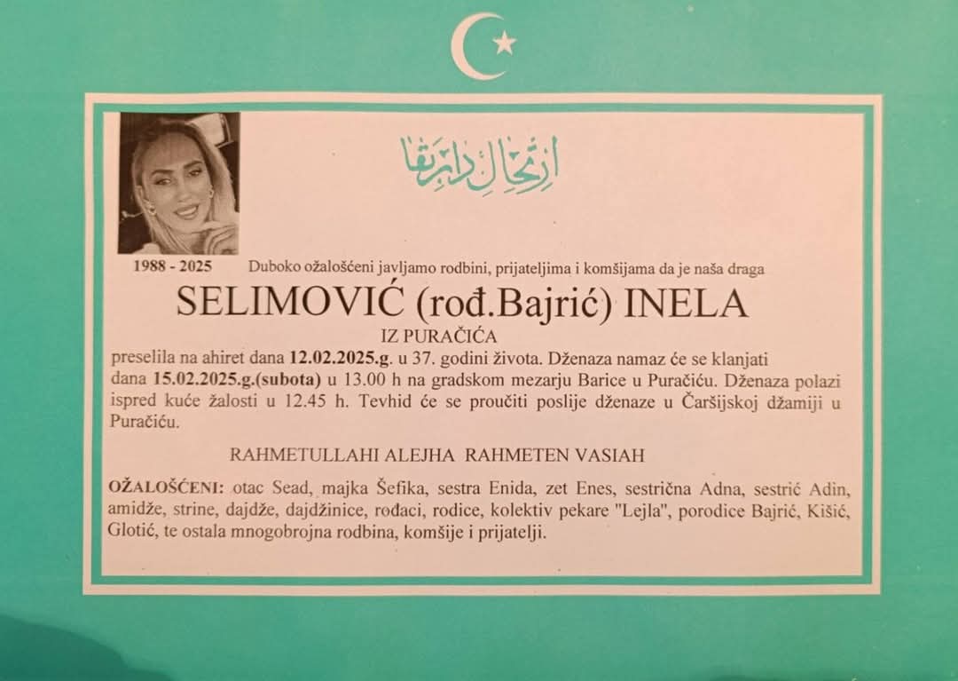 Podsjećamo, za ubistvo Inele i njenog sina Tarika osumnjičen je suprug i otac Emir Selimović koji je još uvijek u bijegu.