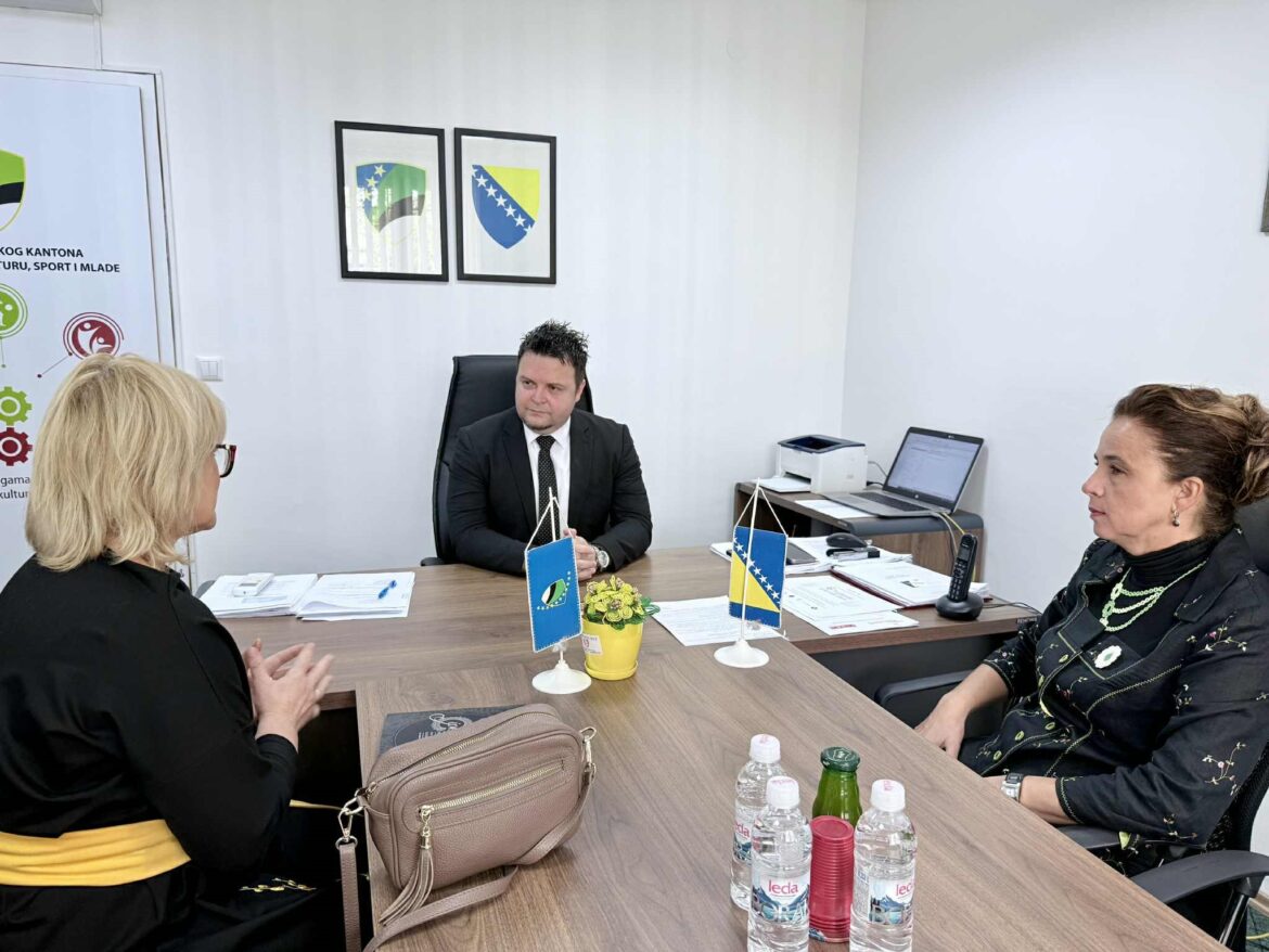 Ministar za kulturu, sport i mlade Tuzlanskog kantona Damir Gazdić danas je u svom kabinetu ugostio Azeminu Ahmedbegović, predsjednicu Udruženja Gračaničko keranje iz Gračanice, te Jasminu Čamdžić, članicu pomenutog udruženja i autoricu prepoznatljivog Cvijeta Srebrenice.