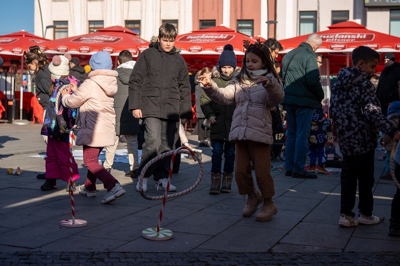 Na Trgu slobode u Tuzli danas je održan zimski dječiji program koji je okupio veliki broj mališana i njihovih roditelja, donoseći prazničnu atmosferu ispunjenu igrom, smijehom i veseljem.