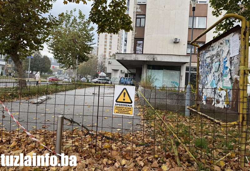 Nakon obrušavanja dijelova fasade stambenog objekta u Ulici Rudarska 73 u Tuzli, još od 1. juna onemogućen je prolaz pješacima i ograđen dio javne površine.