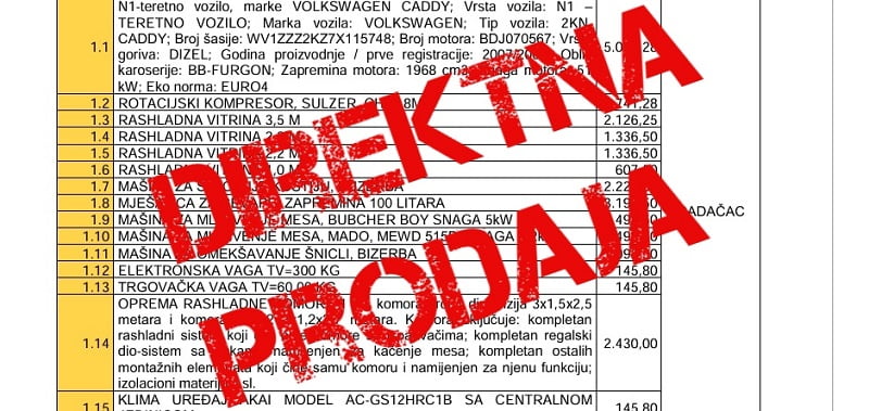 Prema objavljenom oglasu, predmet direktne prodaje je imovina više pravnih i fizičkih osoba koje imaju neizmirene porezne obaveze. Među njima su i: