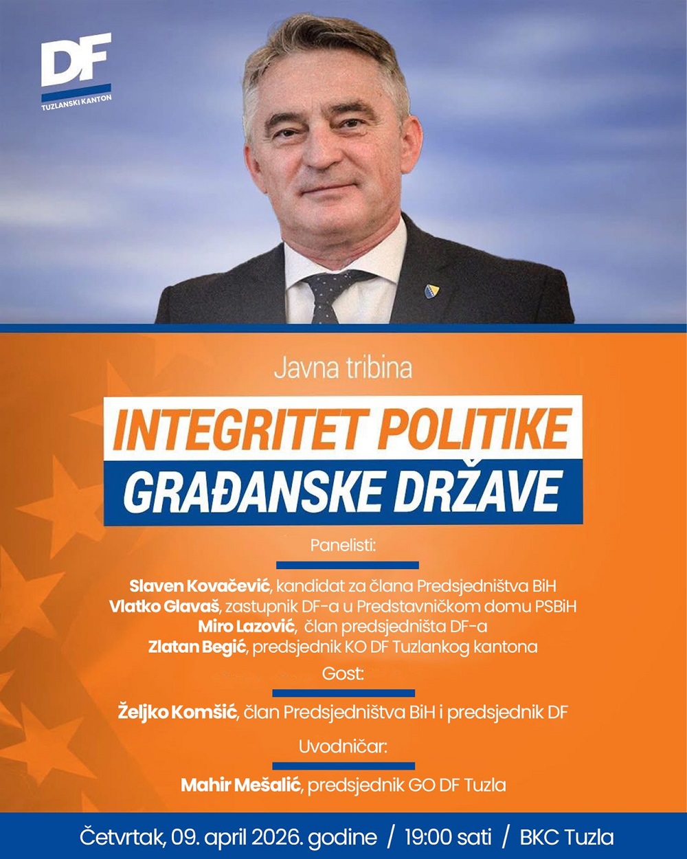 DF organizuje tribinu u Tuzli: Govore Komšić, Kovačević, Lazović…