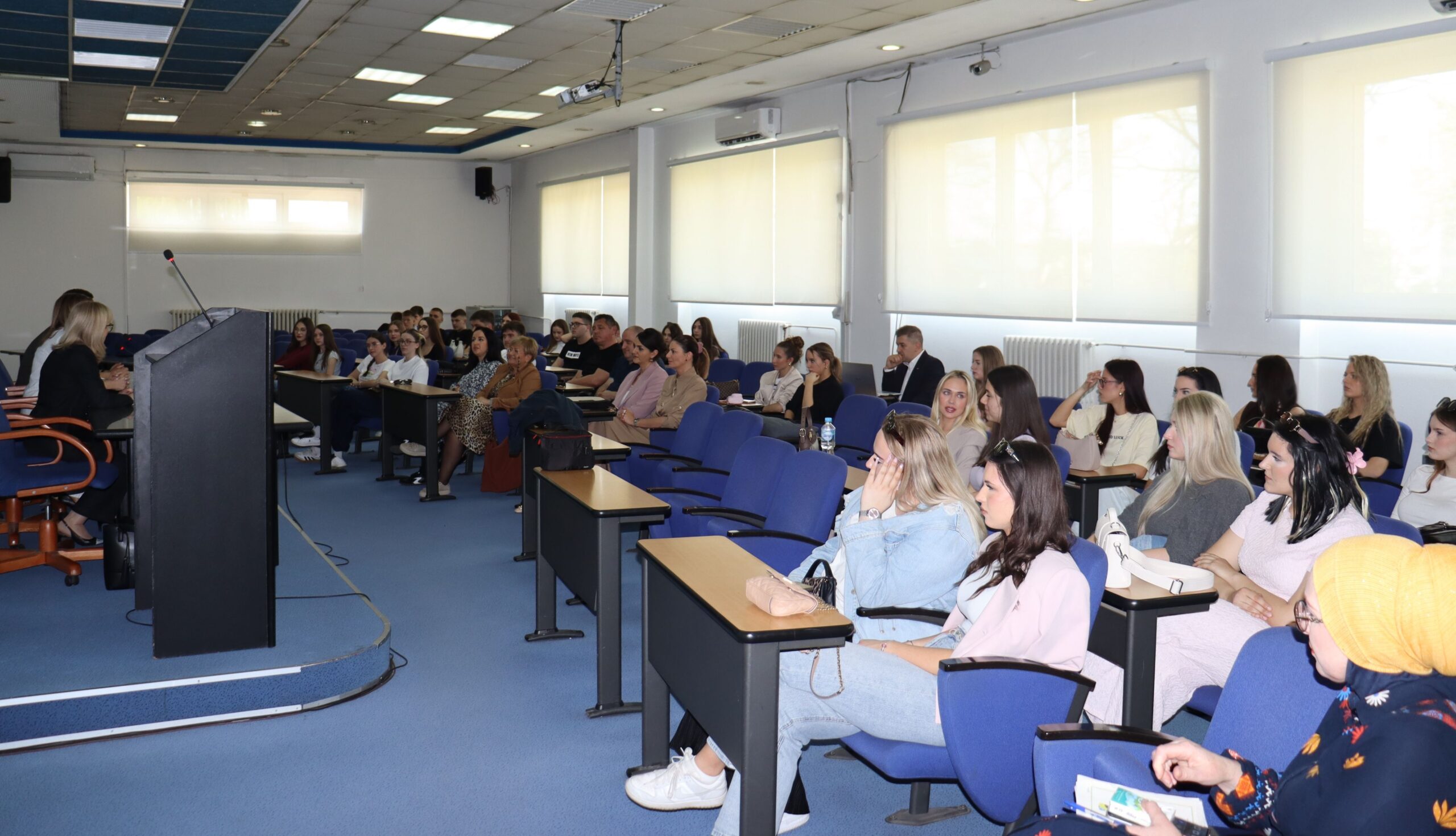 Susret rukovodstva i poslanika Skupštine Tuzlanskog kantona sa učenicima i profesorima iz Osijeka upriličen je u Plavoj sali Bosanskog kulturnog centra Tuzlanskog kantona, u kojoj se održavaju sjednice Skupštine, a potom su gosti posjetili i sjedište Skupštine gdje su razgovarali s rukovodstvom i zaposlenicima Službe Skupštine.