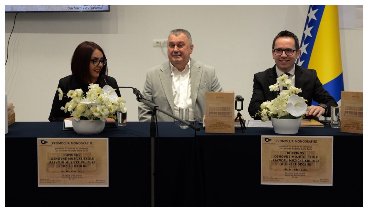 U svečanoj atmosferi, pred ispunjenom koncertnom dvoranom, sinoć je u JU Osnovnoj muzičkoj školi Tuzla upriličena promocija monografije „Doprinos Osnovne muzičke škole razvoju muzičke kulture u Tuzli i okolini“, autora Miradeta Zulića, objavljene povodom velikog jubileja – 75 godina postojanja i kontinuiranog rada ove ustanove.