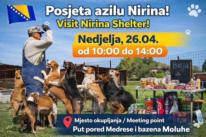 Azil Nirina poziva sve ljubitelje životinja i građane da u nedjelju, 26. aprila, prisustvuju Danu otvorenih vrata, koji će biti održan u periodu od 10 do 14 sati.